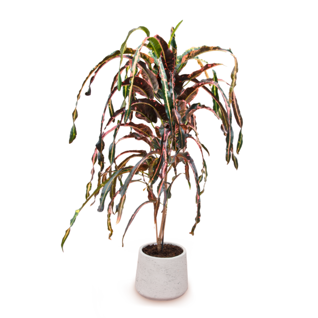 With its colorful character, the Croton plant fits into any interior. There are few plants with such an eccentric appearance, you can even call the Croton a showpiece! This foliage plant is easy to care for, but would like a lot of light to keep the beautiful colors on its leaves. The Croton has good air-purifying properties.