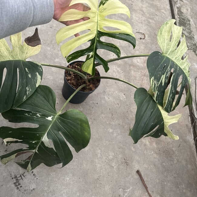 This Monstera Jungle Mint is rare and sought after because of its very unique speckled white shading. As the plant grows and makes new leaves, the variegata will come through stronger and stronger. This one should not be missing from your plant collection
