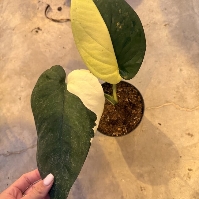 Syngonium Chiapense variegated has heartshaped, semi-glossy leaves that have white variegation throughout. Syngonium Chiapense variegated loves to climb, so provide it with a pole or other support structure to climb! Shop this rare beauty now!