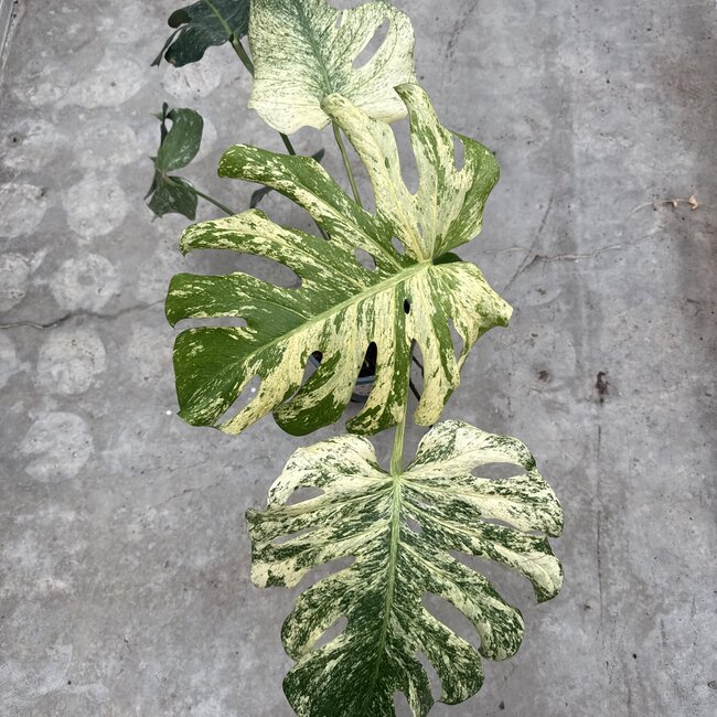 De Monstera White Monster is een speciale soort Monstera-plant met voornamelijk witte/groene bladeren. Net als gewone Monstera-planten heeft hij indirect zonlicht en regelmatig water nodig om gezond en mooi te blijven.
