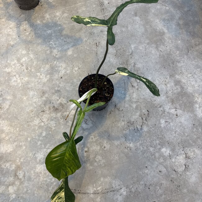 Dit is de uiterst zeldzame en unieke Philodendron Joepii Tricolor variegata. Albo, aurea en groen/grijs variegata in haar bladeren. Ze is volledig geworteld en je kunt haar bewonderen op onze fysieke locatie in Naaldwijk. Neem gerust contact met ons op!