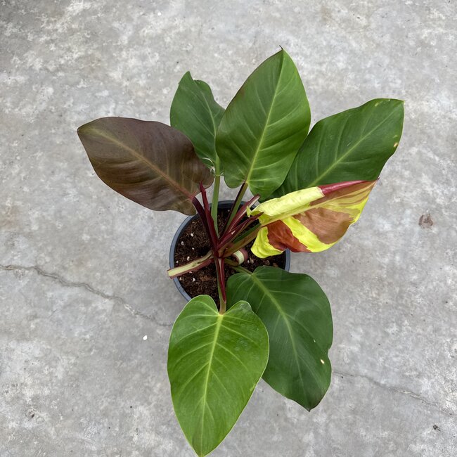 Philodendron Red Moon is een juweeltje voor verzamelaars, met intens geel variegata dat als levend vuur over diepgroene bladeren danst. Gekweekt in een 15cm kwekerij pot - nu 3 beschikbaar - en hij is in het echt net zo gedurfd als op de foto.